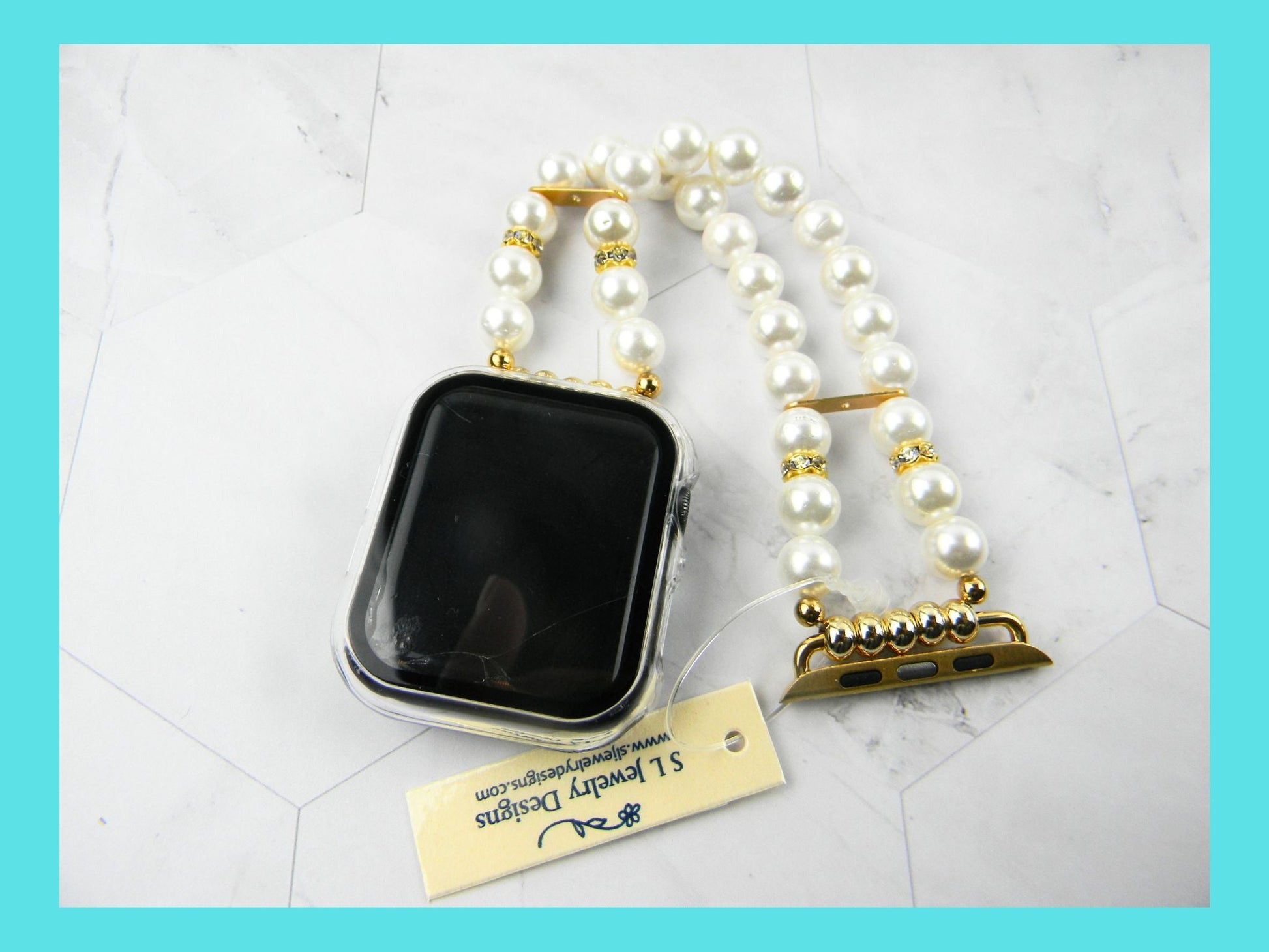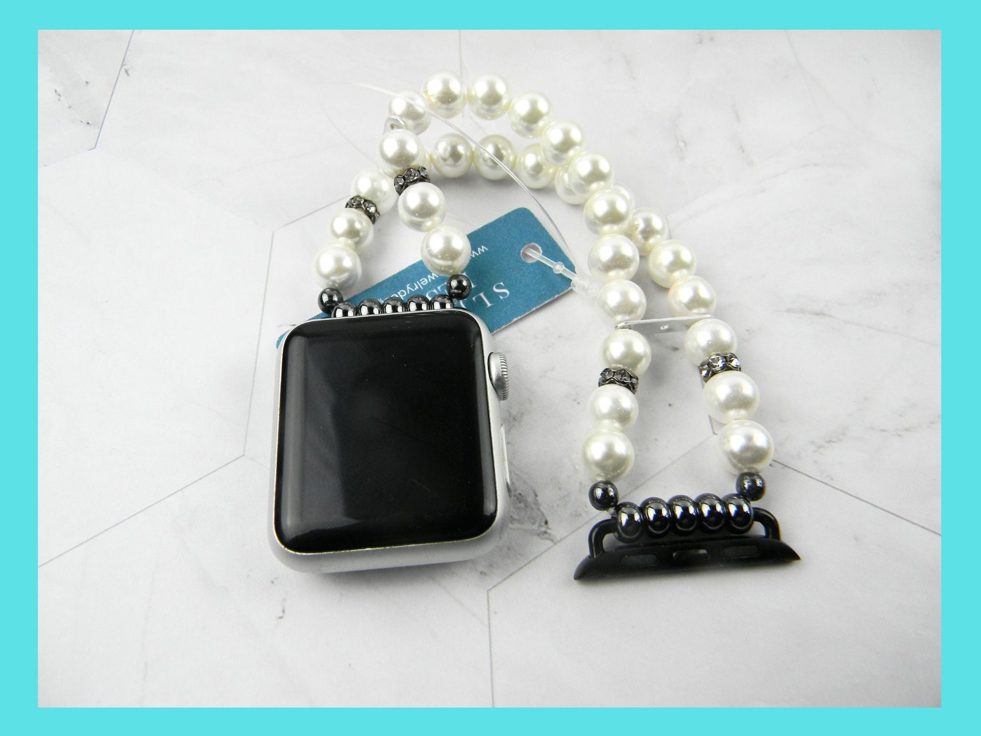 Off White Glass Pearls and Rhinestones Watch Band Bracelet for Apple Watch
