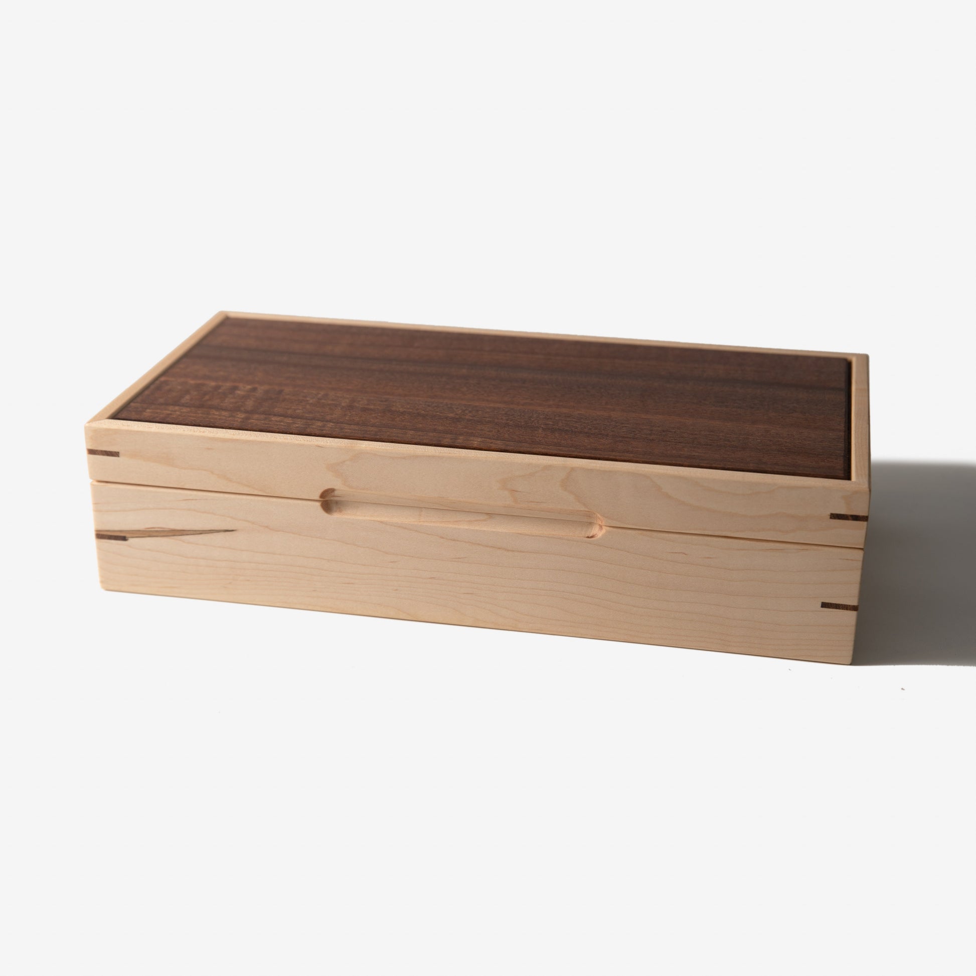Handmade Curly Maple and Sapele Mahogany hardwood watch box, made with genuine hardwoods