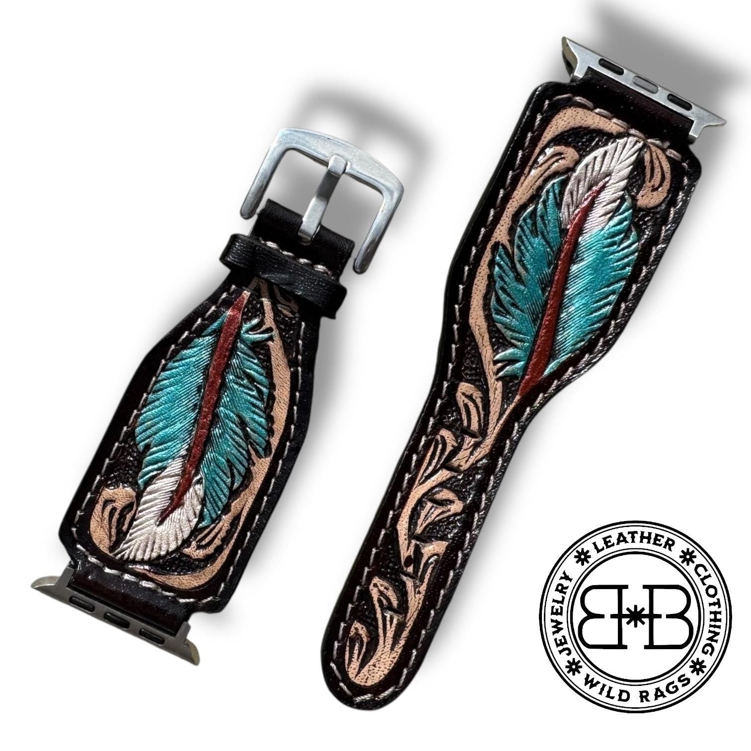 Western Tooled Leather Floral Watch Band by Double B Wild Rags Fits 42mm 44mm 45mm