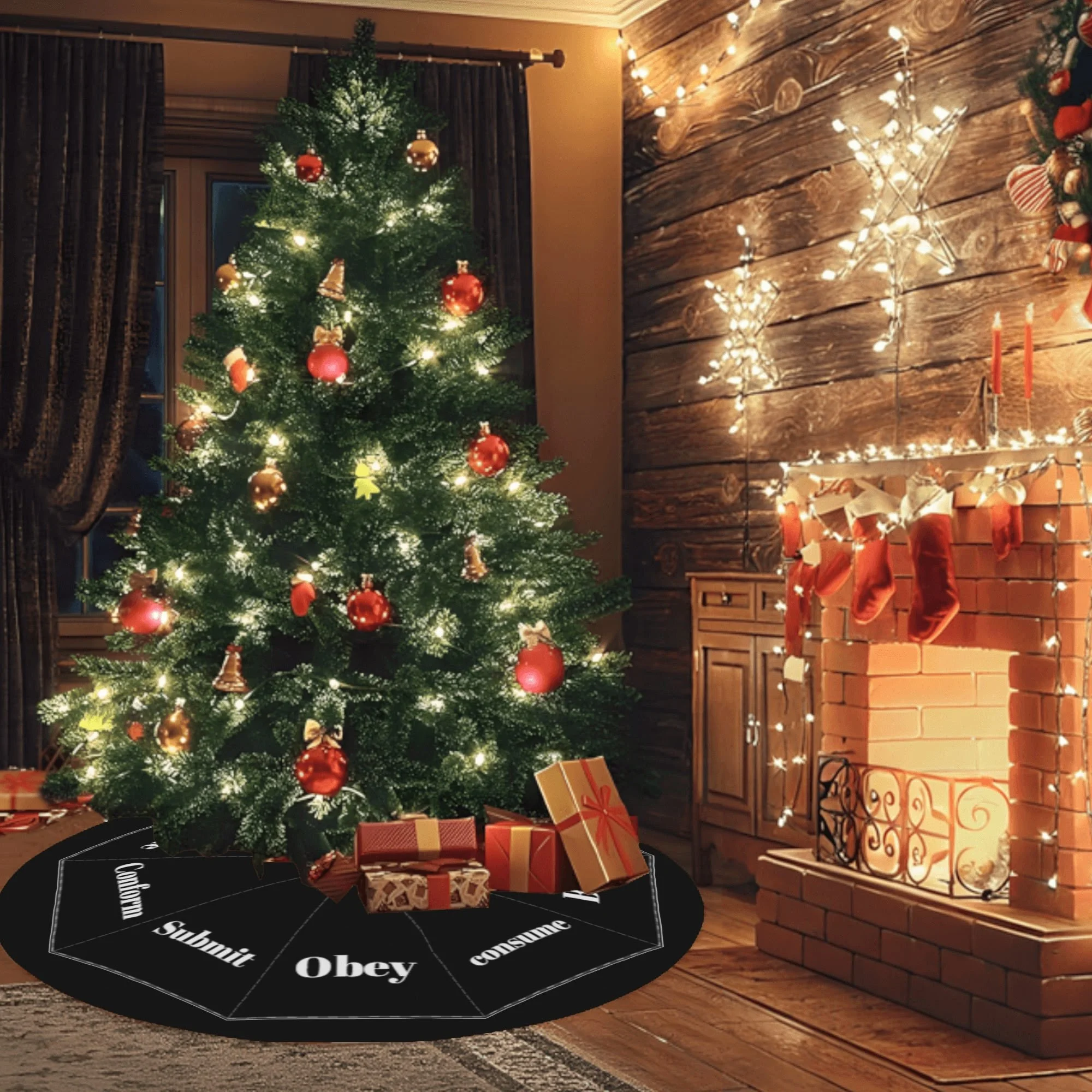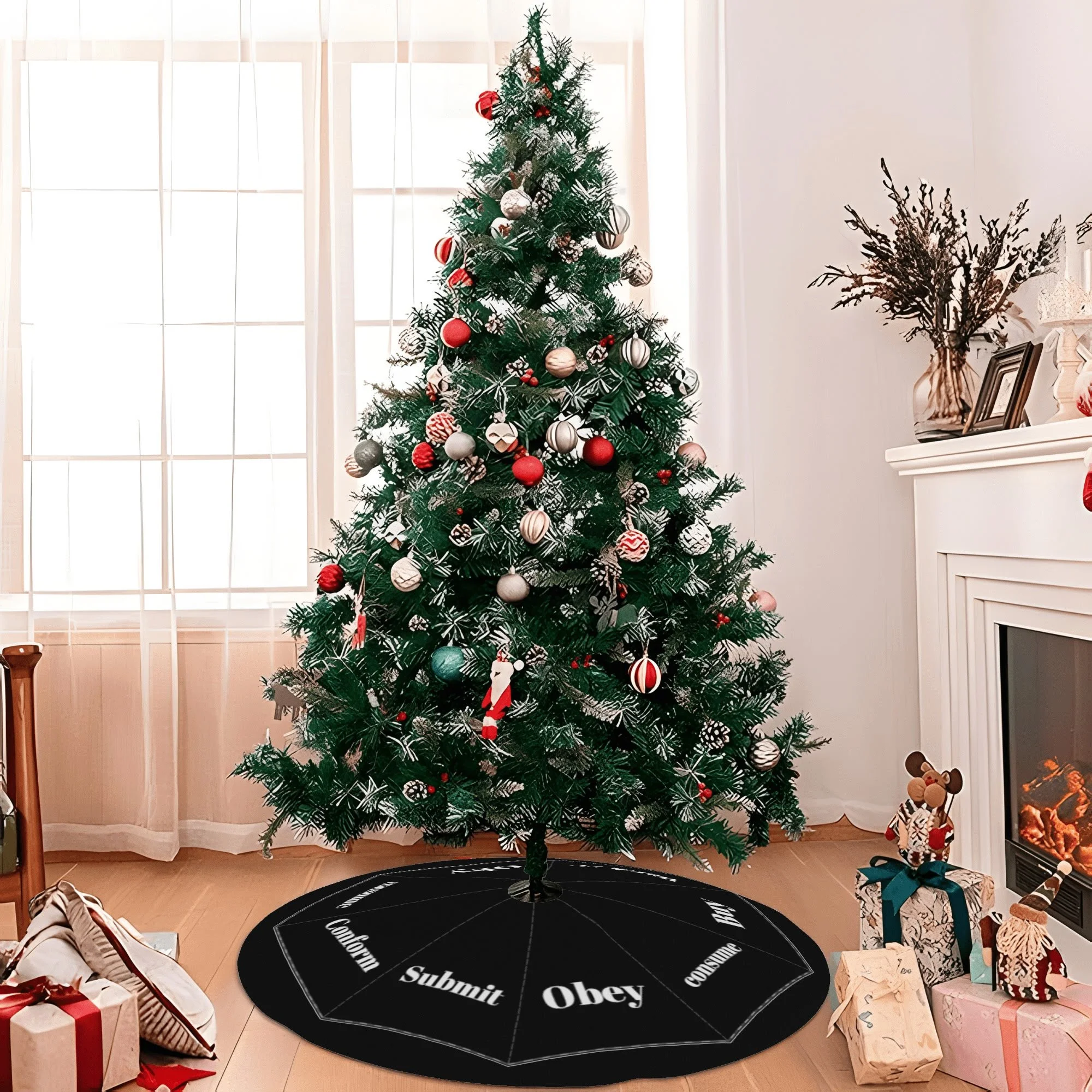 Merry Christmas Tree Skirt for Xmas Decor Home Decorative with Inspirational Messages Printed Festive Holiday Decoration and 3 Sizes ! Suits for most size of Christmas Trees, and you can put the gifts you like on the tree skirt to add more festive feature.