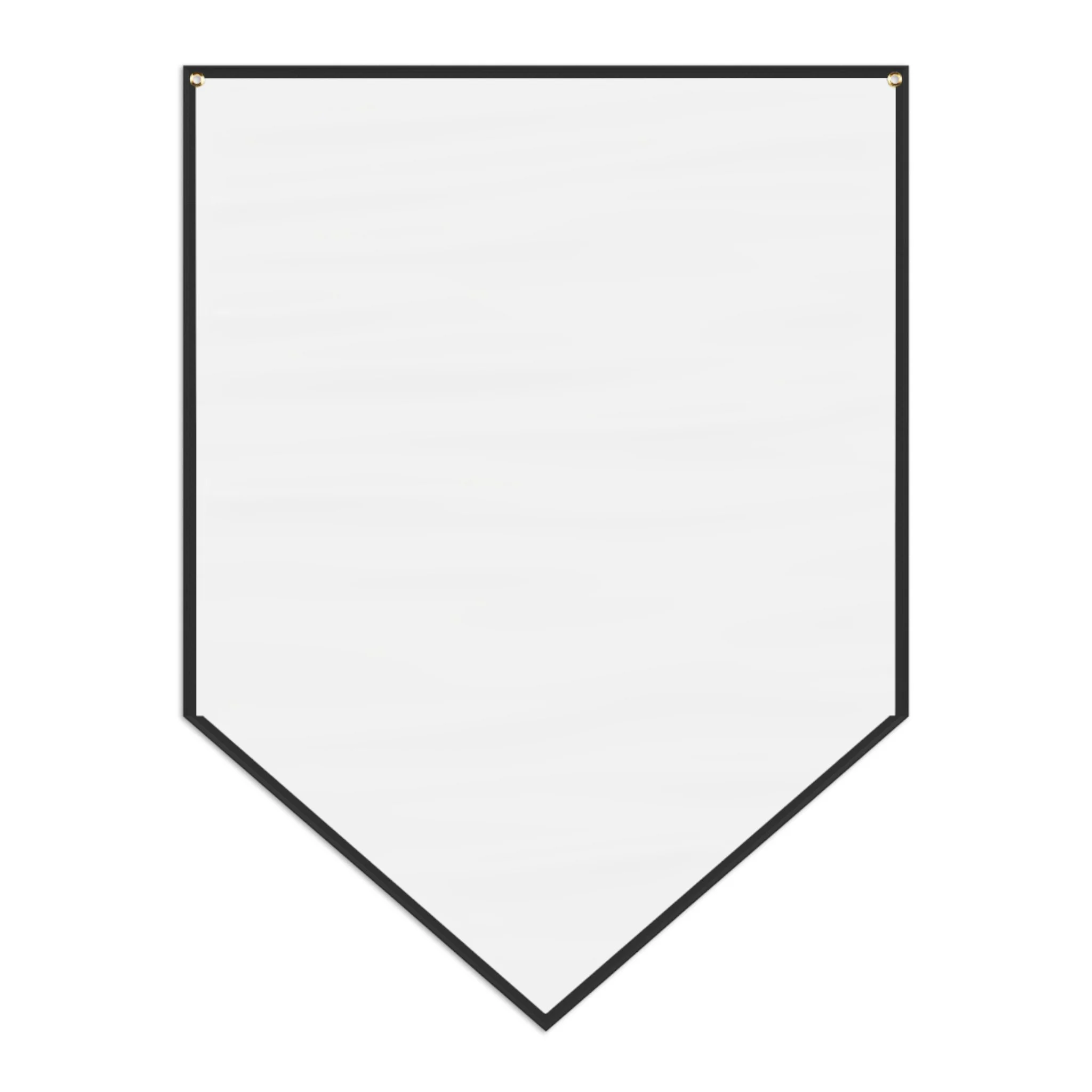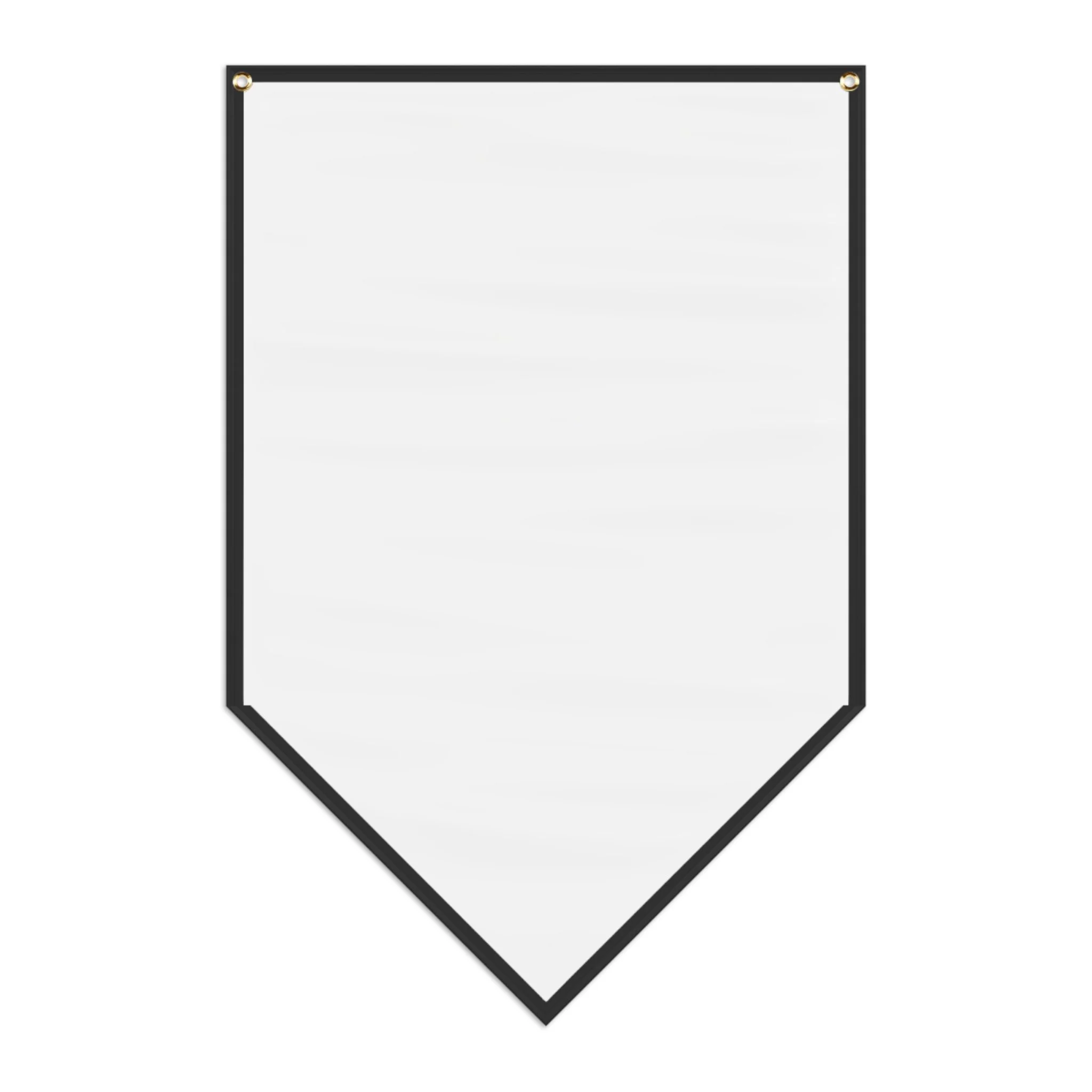 Equip your audience's home with a festive touch thanks to this custom pennant banner. Each pennant is made with 15oz block-out, scrim vinyl material for decoration that looks crisp for as long as possible. Your prints are made in full color with vivid details and each pennant has a slick white matte finish with two brass grommets on the top corners. 2x Hanging ropes included